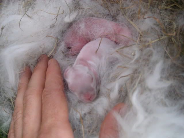 Two baby rabbits, one day after birth. Don't worry, these ones are alive. I'm not callous enough to take/show a picture of dead bunnies.