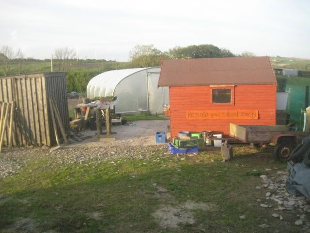 Saturdays are my “half day” of work on the farm. Since it was drizzly when I woke up, I quickly finished up the job I’d almost done the night before (smashing stones with a sledgehammer to make concrete) and then retreated inside the caravan to assemble a couple of garden benches – my “rainy day” task, natch. I was more-or-less done by 10 at which point I joined Mark in town for another Tai Chi lesson. I further learned that what I have done in Mark’s classes isn’t Tai Chi Chuan proper, and isn’t even a martial art; rather, it’s a series of meditative movements intended to loosen/stretch/soothe the body and mind, heavily inspired by Tai Chi. The real Tai Chi is in his earlier class (the one that I watched and pathetically tried to follow visually last time before doing these movements). Oh well! I still want to find out more when I get back to Ann Arbor.