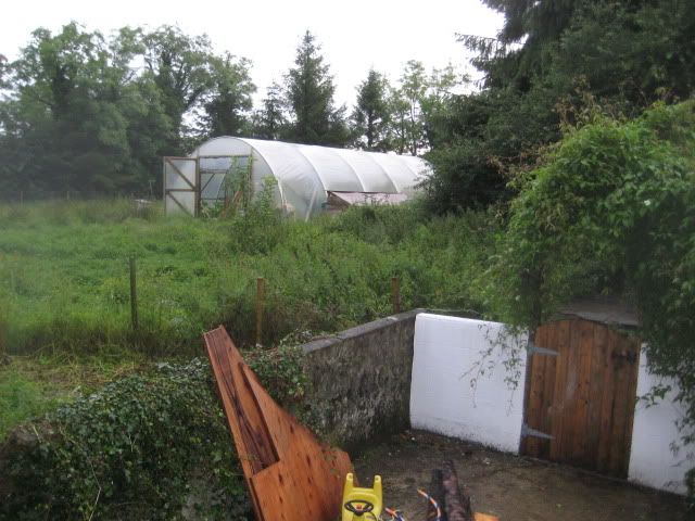 The entrance to the polytunnel and the fowl area.