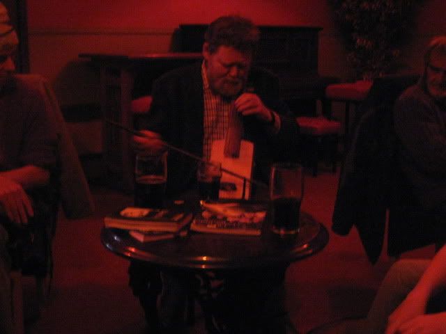 The music was great, though. The aforementioned Johnny was there, as was his friend Tony, and they both played lots of Bob Dylan, Leonard Cohen, and…well, non-Irish trad stuff, which was a nice change. There was a guy named Sam, about six and a half feet tall, with long reddish hair and a wildly long goatee. He looked kind of like an Irish Viking, but he later turned out to be English. He’d brought a guitar, a bouzouki, and a lute, and said that he’d “traveled light” that night. His girlfriend/wife also had an enormous collection of flutes/pipes/whistles, and the two of them made an excellent (if renfest-esque) team. There was also Michael.